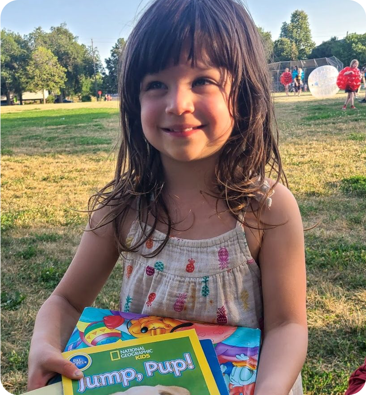 Yawen's radiant joy as she selected a bag of free books at her neighborhood event speaks volumes! TFBB's presence at community events in under-resourced neighborhoods ensures children like Yawen enjoy equal access to age-appropriate books. Empowering them to choose books for their homes not only fosters more frequent reading but also lays the groundwork for a successful education, opening doors to future life opportunities.